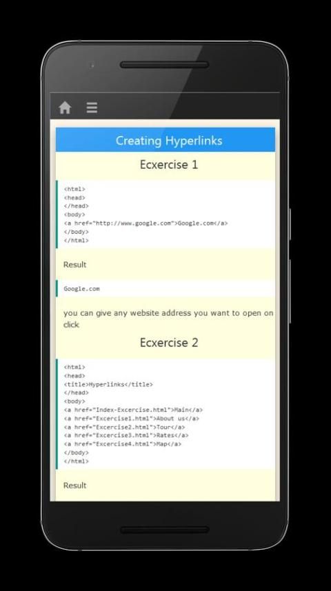 तो यह नि: शुल्क एप्लिकेशन एचटीएमएल शिक्षक आनंद लेते हैं और एक आसान तरीका में वेब पृष्ठों को बनाने के लिए सीख सकते हैं।