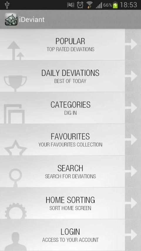 Android के लिए iDeviant DeviantArt पर विचलन में निर्दोष ब्राउज़िंग के लिए दस्तकारी आवेदन है. आवेदन की अनुमति देता है उपयोगकर्ता फोटोग्राफ़ी, 3 डी डिजाइन, हास्य, काव्य फ्लैश एनिमेशन से कई श्रेणियों में 100 मिलियन 14,500,000 सदस्यों और उनके प्रति दिन 140.000 प्रस्तुतियाँ से प्रस्तुतियाँ के माध्यम से जाना.