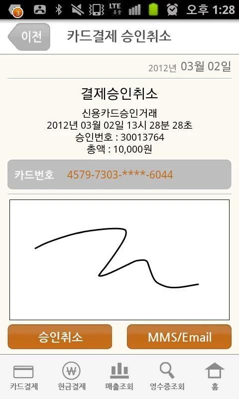 iPay를 통하여 읽은 카드 정보는 스마트폰 통하여 카드 결재가 이루어 집니다.