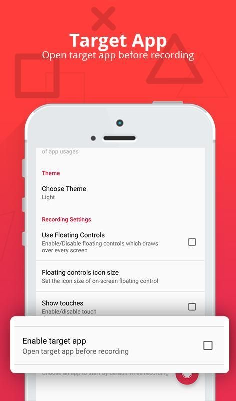 इस ऐप में वीडियो रिकॉर्ड करने और इस ऐप से वीडियो की सूची खेलने जैसी कई विशेषताएं हैं। आप वीडियो रिकॉर्ड करते समय फ़्लोटिंग कंट्रोल बटन को बंद कर सकते हैं, फ़्लोटिंग कंट्रोल बटन बहुत आसानी और नियंत्रण विकल्प लाते हैं, उदाहरण के लिए आप एक ट्यूटोरियल या ऐसा कुछ बना सकते हैं जिससे यह उन लोगों के लिए आसानी लाएगा जो वीडियो देख रहे हैं आवाज निर्देश। इसमें वीडियो रिकॉर्डिंग के लिए विभिन्न स्क्रीन रिज़ॉल्यूशन, फ्रेम प्रति सेकंड, बिट रेट, सेव लोकेशन ऑप्शन, वीडियो शीर्षक को बदलते हैं। आप फ्लोटिंग कंट्रोल को बंद भी कर सकते हैं और इसका आकार भी बदल सकते हैं और शो टच ऑप्शन को भी बंद कर सकते हैं। आप सेल फोन को भी हिलाकर स्टार्ट स्टॉप वीडियो का विकल्प सेट कर सकते हैं।