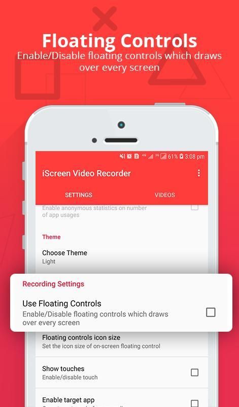 This App consist of many features like recording videos and playing that list of videos from this app. You can turn on off the floating control buttons while recording videos, those floating control buttons brings so much ease and control options, For example you can make a tutorial or something like that so it will bring ease for the folks who are watching the video with voice instructions. It has the various screen resolutions for video recording, frames per second, Bit rate, changing the save location option, video title. You can also on off floating controls and can change the size of it and can also turn on off the Show Touches Option. You can set the option of start stop video via Shaking the cell phone too.