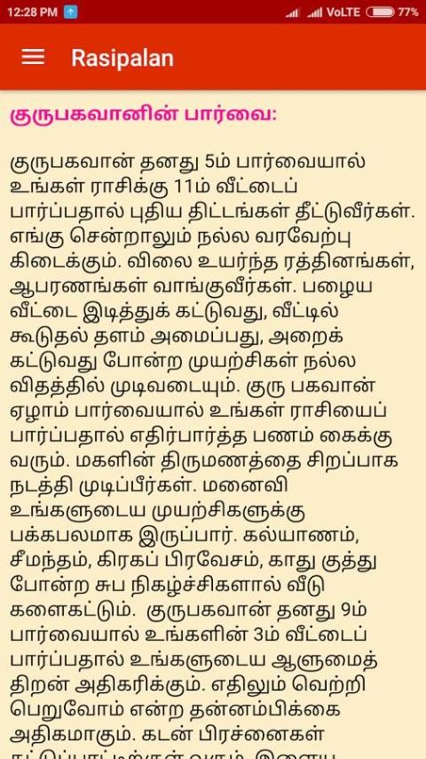 9Apps is your first choice to download apps. 20,000+ users downloaded Daily Rasi Palan 2018 - Today Rasipalan in Tamil latest version on 9Apps for free every week! The app has made a strong effect. This hot app was released on 2018-02-09. More apps was release recently, you can download them and share with your friends!
