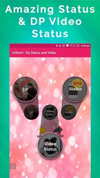 inShort : Dp Status and Video app provide dp, status and video status. You can find dp, status and video status in inShort : Dp Status and Video app. You can select from a wide range of category, dp for Whatsapp, status for Whatsapp, video status for social media. inShort : Dp Status and Video app is a specially designed app for dp, status and video status. You can also find hindi dp and status, english dp and status, hindi dp and status for social media, english dp and status for social media, hindi video status, english video status, hindi video status for social media, english video status for social media. inShort : Dp Status and Video have a collection of latest dp, latest status, latest video status, latest dp and status for Whatsapp, latest video status for social media, beautiful dp, beautiful status for Whatsapp, beautiful video status for social media, beautiful video status, beautiful dp for Whatsapp, beautiful status, beautiful dp and status, beautiful dp for girls, beautiful dp for boys, beautiful video status for boys, beautiful video status for girls and many more.