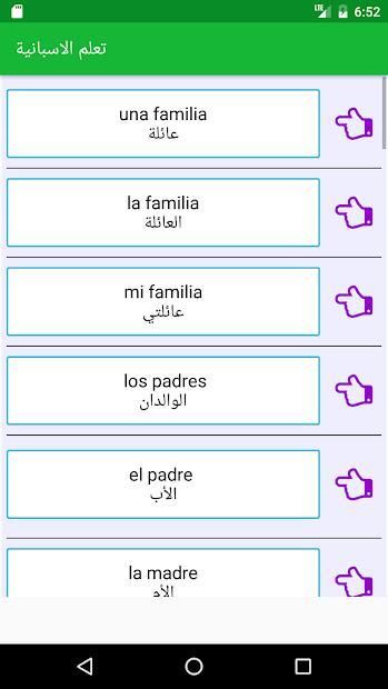 इस एप्लिकेशन के माध्यम से आप अरबी भाषा के साथ-साथ स्पेनिश भाषा के गुणों में अनुवादित वाक्यों के साथ स्पैनिश बातचीत के साथ व्यावसायिकता तक और बिना नेट के स्पेनिश से सीखने में सक्षम होंगे,