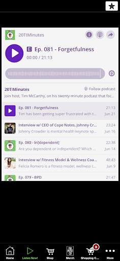 मेजबान में शामिल हों & amp;मानसिक स्वास्थ्य अधिवक्ता टिम मैकार्थी अपने साप्ताहिक पॉडकास्ट, 20Timinutes पर!एपिसोड केवल 20 मिनट हैं और हर मंगलवार को जारी किए जाते हैं!आप iTunes, Spotify, Amazon Music & amp पर सुन सकते हैं;अधिक यह पॉडकास्ट मानसिक स्वास्थ्य पर केंद्रित है & amp;हास्य, सकारात्मकता, प्रेरणा, और amp की भावना के साथ कल्याण;अंतर्दृष्टि।टिम भी अपनी व्यक्तिगत कहानियों और चिंता और उन्मत्त अवसाद के साथ अपनी लड़ाई के संघर्ष को साझा करेंगे।पॉडकास्ट के साथ टिम का लक्ष्य लोगों को यह महसूस करने में मदद करना है कि वे इस दुनिया में अकेले नहीं हैं, जब वास्तव में मानसिक स्वास्थ्य के मुद्दों का सामना करने वाले लाखों लोग हैं।जब भी आप चाहते हैं, टिम को संदेश देने के लिए स्वतंत्र महसूस करें, यदि आप चैट करना चाहते हैं या यहां तक कि सिर्फ हाय कहना चाहते हैं!यह पॉडकास्ट पेशेवर सलाह, निदान या उपचार के लिए एक विकल्प नहीं है।हमेशा अपने मानसिक स्वास्थ्य पेशेवर या अन्य योग्य स्वास्थ्य प्रदाता की सलाह लें, जो आपकी स्थिति के बारे में आपके किसी भी प्रश्न के साथ हो सकता है।इंस्टाग्राम, ट्विटर, फेसबुक, और amp पर टिम का पालन करें;YouTube: @20timinutes
