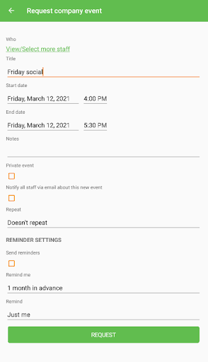 एक कर्मचारी वर्ग खाते के साथ नि: शुल्क (नि: शुल्क परीक्षण http://www.staffsquared.com) - कर्मचारी संपर्क जानकारी देखें, अनुरोध करें और समय पर समय का प्रबंधन करें।