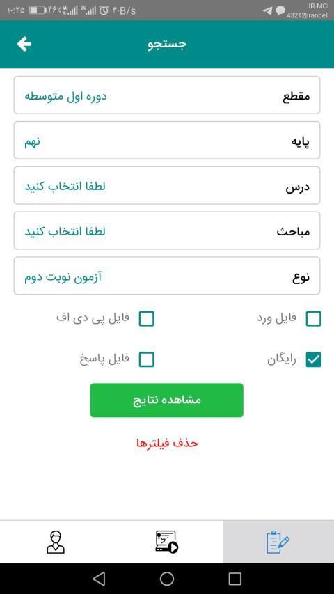 فیلتر کردن بر اساس مقطع / نوع / پایه / درس / دبیر ثبت کننده از صفحه جزئیات آزمونها و فایلهای آموزشی
