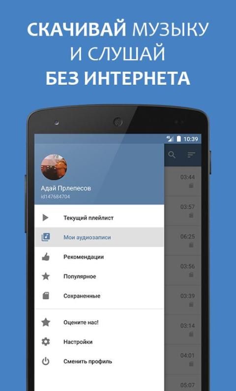 सुनो और VKontakte के बिना इंटरनेट से संगीत डाउनलोड करें।
