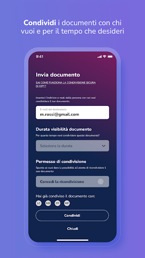 उन दस्तावेजों को साझा करें जो आप चाहते हैं कि आप चाहते हैं कि आप चाहते हैं।Kipy की साझाकरण विधि सुरक्षित है क्योंकि फ़ाइलें ऐप के अंदर ट्रैकिंग पर नज़र रखती हैं।