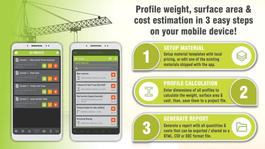 Calculate & quantify steel, wood & other profiles & sections in just 3 simple steps!