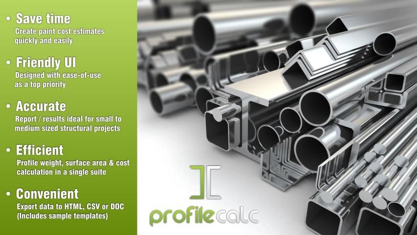 ProfileCALC is a professional, easy-to-use profile weight, surface area & cost estimation system