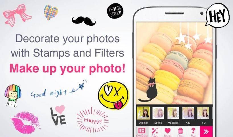 Enjoy decorating photos with cute stamps and effects!