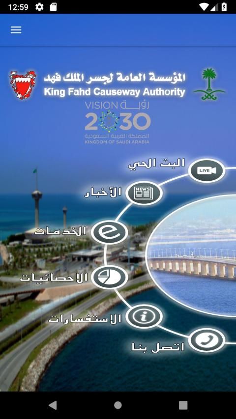 التطبيق الرسمي للمؤسسة العامة لجسر الملك فهد والذي يقوم بتوفير المعلومات اللازمة للمسافر والخدمات الإلكترونية التي تخص المسافر والموردين.
