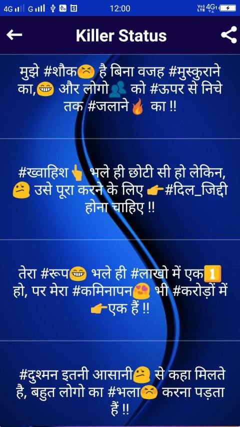 Any आप किसी भी किलर स्टेटस को विभिन्न सोशल मीडिया पर साझा कर सकते हैं।