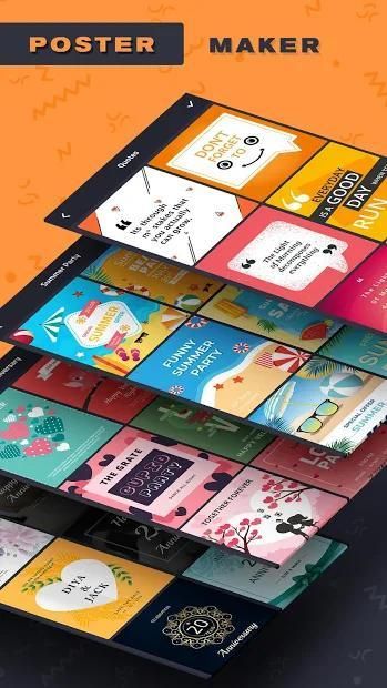 Poster Maker helps you to create posters, Flayer, text on photo, write memes on pictures and make social media banners. Also create day’s celebration, quotes, love’s albums, greetings card, invitation card, sales, offers and advertising photos and much more.