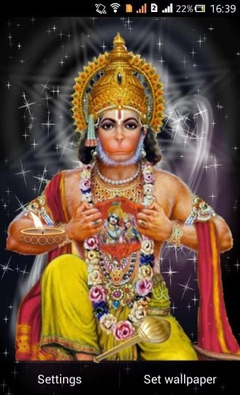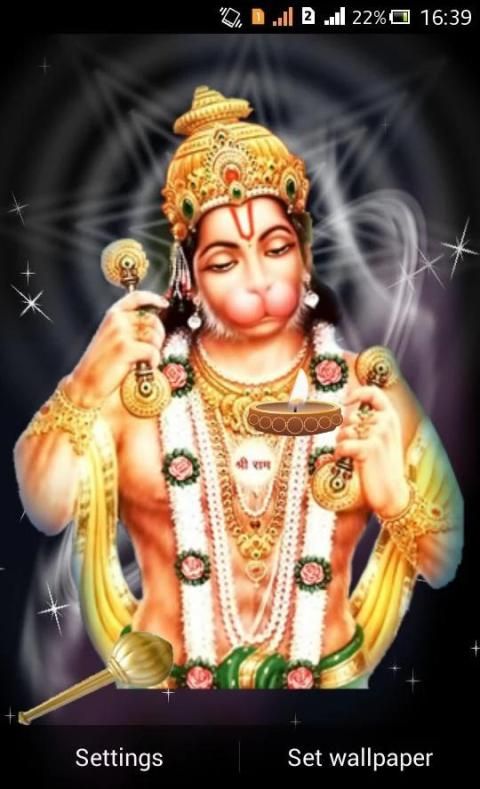 Lord Hanuman Live Wallpapers with amazing background effects with stars,Diya and Gada.