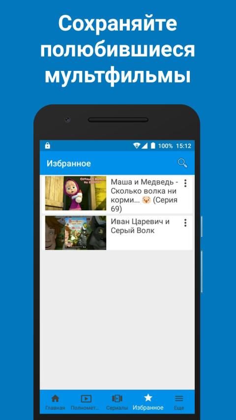 - возможность добавлять полюбившийся вам мультфильм в раздел Избранное