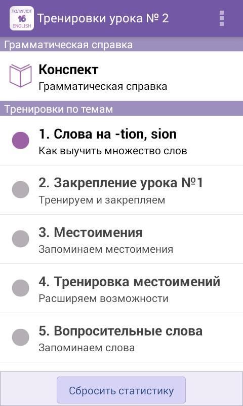 "Полиглот 16" - lite версия приложения для отработки английского языка.