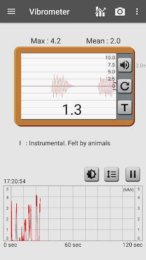 मापा मूल्य संशोधित Mercalli तीव्रता पैमाने (एमएमआई) से संबंधित हैं। यदि यह गलत है, तो आप इसे कैलिब्रेट कर सकते हैं ताकि अधिकतम मूल्य लगभग 10-11 हो। कृपया इसे सहायक उपकरण के रूप में उपयोग करें।