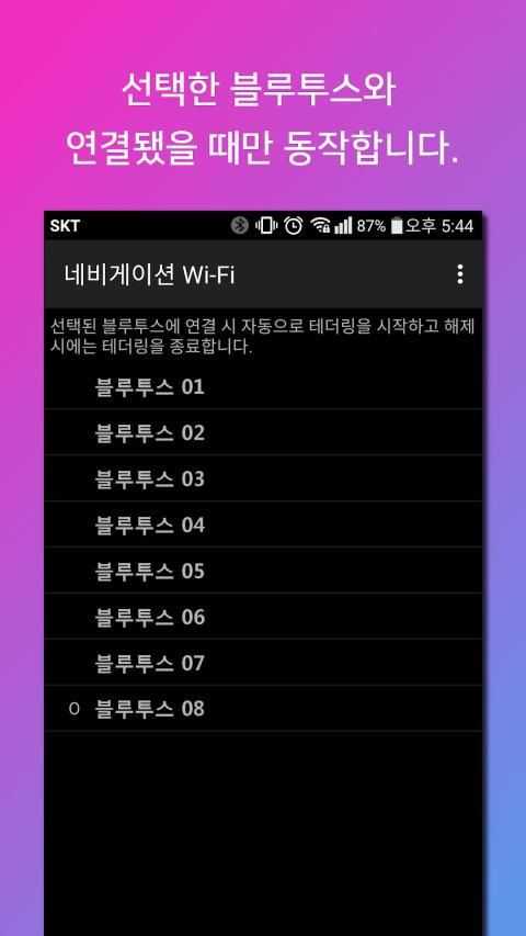 자동으로 핫스팟을 켜줘서 네비게이션을 편리하게 이용할 수 있는 앱입니다.