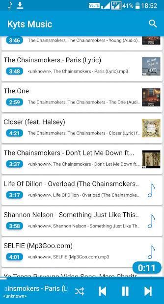 Kyts संगीत खिलाड़ी संगीत ऑफ़लाइन खेलता है। समर्थित प्रारूप एमपी 3 है