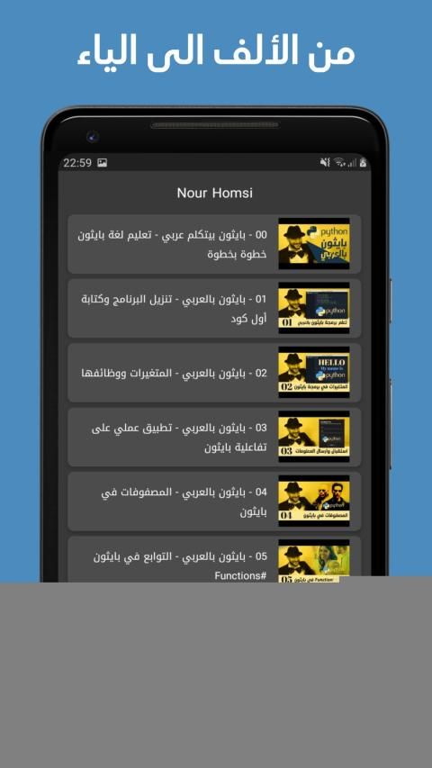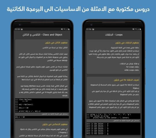 यह पहला अरबी अनुप्रयोग है जो प्रसिद्ध प्रोग्रामिंग भाषा पायथन को लक्षित करता है, इस भाषा में दिलचस्पी रखने वाले सभी लोगों और पायथन में ऑब्जेक्ट-ओरिएंटेड प्रोग्रामिंग को सीखने के लिए सामान्य रूप से इस भाषा और प्रोग्रामिंग में रुचि रखने वाले लोगों की मदद करने का प्रयास करता है।