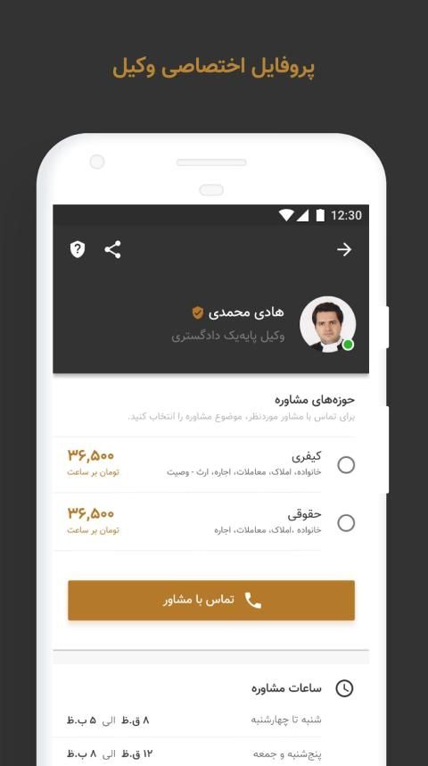 *امکان ارتباط مقرون به صرفه با وکیل شخصی کاربر