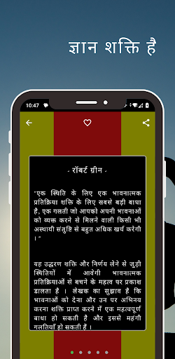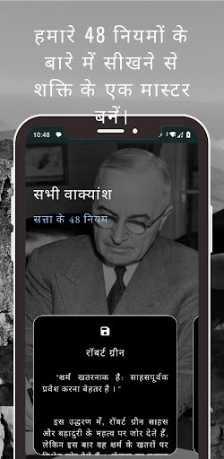 हम एक नेत्रहीन अपील और उपयोगकर्ता के अनुकूल इंटरफेस की पेशकश करने में गर्व महसूस करते हैं । ऐप के माध्यम से नेविगेट करना एक सहज अनुभव है, जिससे आप अपने भीतर के गहन ज्ञान पर ध्यान केंद्रित कर सकते हैं । "शक्ति के 48 कानूनों" की कालातीत शिक्षाओं के साथ अपनी सगाई को बढ़ाने के लिए डिज़ाइन किए गए इंटरफ़ेस में खुद को विसर्जित करें । "