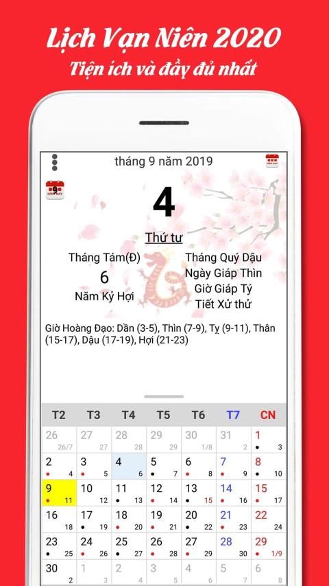 Lịch âm 2020 là ứng dụng lịch vạn niên nhẹ và dễ sử dụng