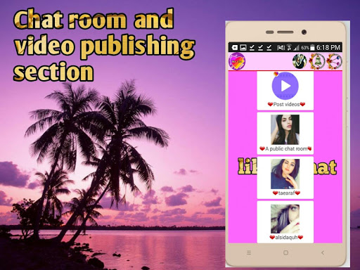 There are chat rooms Private conversations You can post a video from the publishing section You can post pictures in the chat room Sexual narration is forbidden Speak respectfully within the app