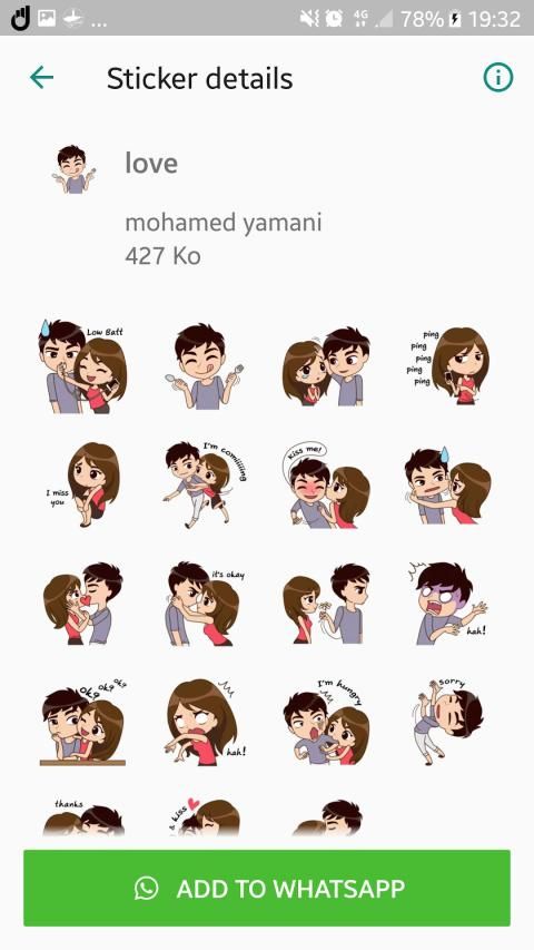 ملصقات واتساب WAStickers - ستيكرات حب و غرام للواتساب تحتوي على العديد من استكرات حب كل هدا في برنامج واحد