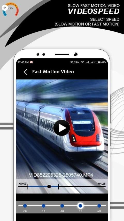 अपने वीडियो फास्ट एंड धीमी गति वीडियो गति ऊपर या धीमी गति से अपने वीडियो प्लेबैक करने में सक्षम होने के अलावा अपने वीडियो में से किसी को धीमा करने के लिए गति। आपका त्वरित या धीमा वीडियो 1 / 8x के बीच किसी भी गति के लिए सेट किया जा सकता है और मूल वीडियो की गति 8x।