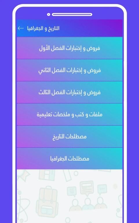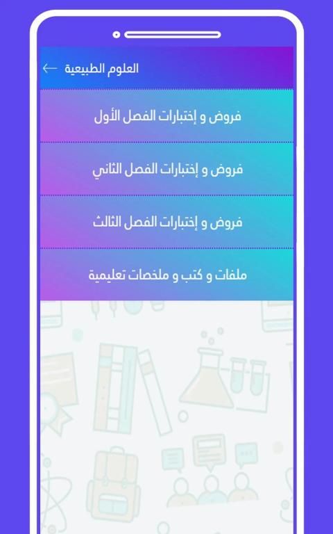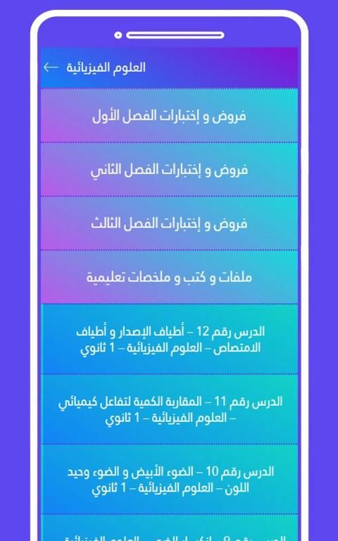 المواد التي يحتويها التطبيق :