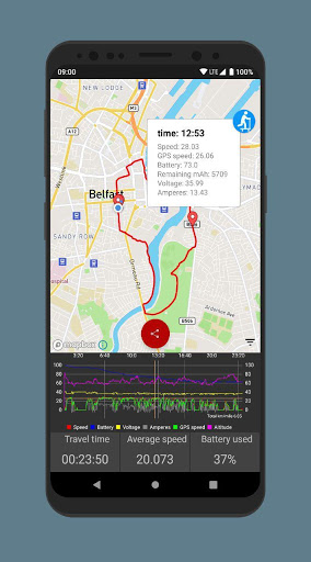 - स्कूटर जानकारी के साथ ग्राफ के स्वचालित निर्माण समय के एक समारोह के रूप में (प्रयुक्त बैटरी प्रतिशत, अधिकतम गति, आदि);