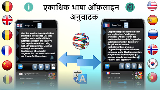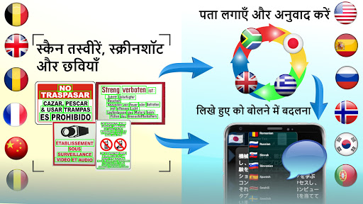अपने कैमरे से लैटिन आधारित भाषाओं को स्कैन करें और इंटरनेट के बिना भाषाओं के बीच अनुवाद करें। अनुवादक OCR स्वचालित रूप से यह भी पता लगा सकता है कि कौन सी भाषा और उपयुक्त पाठ से भाषण भाषा में परिवर्तित होती है, जिसमें ऑफ़लाइन भाषण पहचान भी शामिल है।