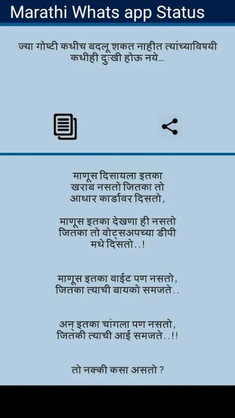 I would like to recommend you an application with large number of downloaders. 20,000+ users downloaded Marathi Status एकदम झक्कास latest version on 9Apps for free every week! You can enjoy it by use in your own phone. This hot app was released on 2017-01-09. You can quickly get it from 9Apps!