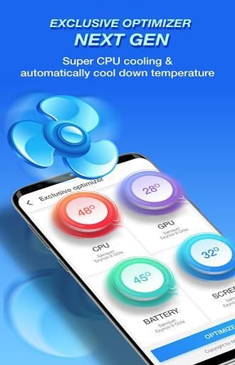 मास्टर फोन और सीपीयू कूलर 2018 सीपीयू उपयोग को कम करने और अपने फोन को ठंडा करने के लिए डिवाइस तापमान पर नज़र रखता है।