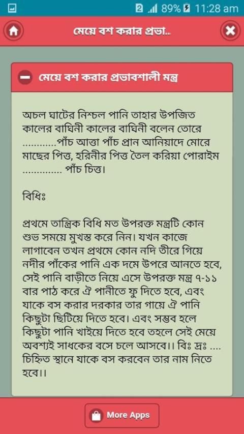 আমাদের সমাজে এখন অনেক মানুষ আছে যে তারা ভিবিন্ন জাদু, মন্ত্র করে থাকে। এবং এর মাধ্যমে উপকার ও পেয়ে থাকে। কিন্তু তারা সঠিক নিয়ম এবং সঠিক গুরুর সন্দান পয়না। তাই তাদের কথা চিন্তা করেই আমাদের এই এ্যাপসটা, যাতে দেওয়া আছে মন্ত্র এবং যাদু মন্ত্র করার নিয়ম। তাই দেরি না করে এই এ্যাপসটি প্রথম থেকে শেষ পর্যন্ত ভাল করে পরুন.আশা করি আপনাদের সবার কাজে আসবে।