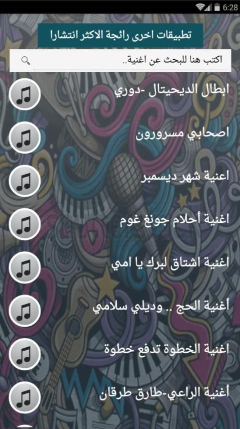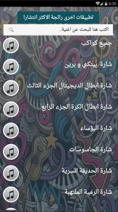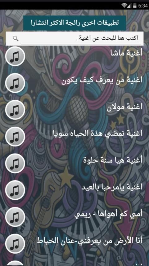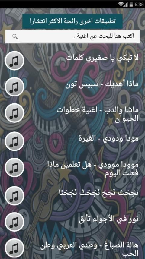 - اغاني كثيرة بحجم مناسب لجميع الاجهزة