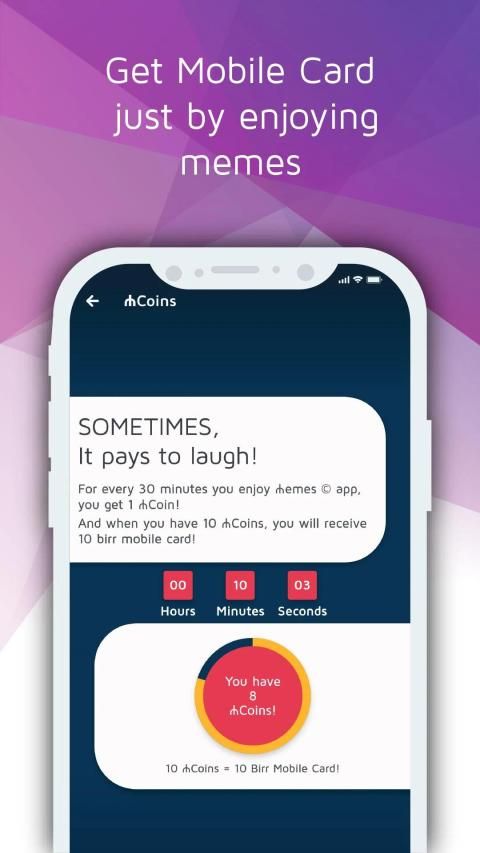 हर मिनट के लिए जब आप मेम का आनंद लेते हैं, तो आपको ሐ सिक्का की गणना ऐप में बिताए गए समय के साथ मिलती है। यह ऐसा है। जब आपको पर्याप्त / सिक्के मिलेंगे तो आपको