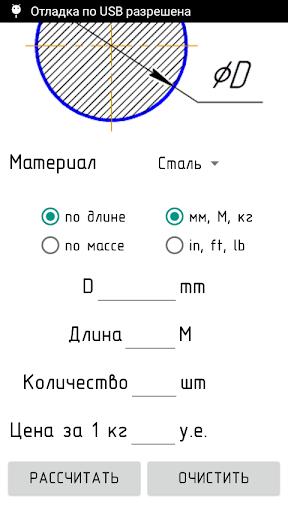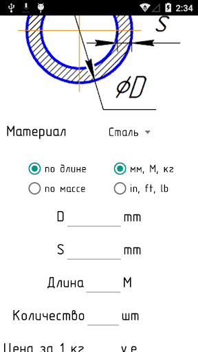 कार्यक्रम धातु की लंबाई या वजन में धातु की गणना करता है, एक मनमानी आकार, साथ ही मानकीकृत आयाम भी होते हैं।