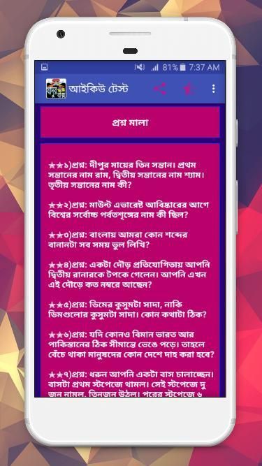 >> আইকিউ টেস্ট। এতে রয়েছে আইকিউ এর বিভিন্ন প্রশ্ন মালা এবং সাথে রয়েছে উত্তর মালা।