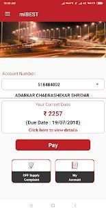 miBEST B.E.S. के उपभोक्ताओं के लिए सक्षम बनाता है एंड टी के उपक्रम वर्तमान विधेयक और बिलिंग इतिहास की तरह बिलिंग संबंधी जानकारी देखने के लिए। उपभोक्ताओं को नेट बैंकिंग के साथ ही क्रेडिट / डेबिट कार्ड की सुविधा के माध्यम से ऑनलाइन भुगतान कर सकते हैं।