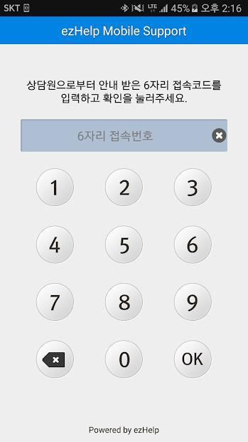 Step2. 상담원에게 안내 받은 접속코드(6자리)를 입력하고 OK 버튼을 터치합니다.