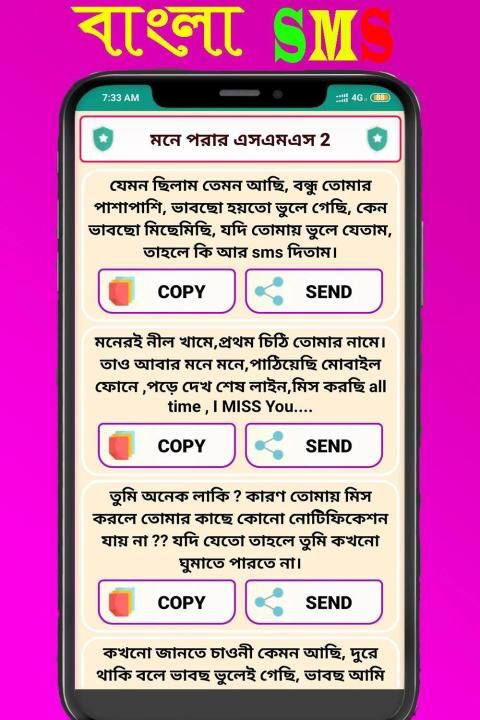 हमें रोज एसएमएस करना होगा। एसएमएस स्पष्ट और भाषा में धाराप्रवाह और रोमांटिक और सेक्सी हो रहा है। लेकिन वे हमेशा सुंदर और सौंदर्य बात करने या पाठ संदेश याद नहीं है। तो आपके लिए, हमारी Minilav टीम सभी sms को ध्यान में रखते हुए लगभग 1+ Bangla Top SMS Collection लेकर आई है। आप इन संदेशों को अपने प्रियजनों को आसानी से बना सकते हैं क्योंकि प्रत्येक शेयर में एक शेयर और कॉपी बटन है।