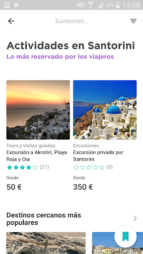 ➢ "गतिविधियों" खंड में आप सबसे अच्छी योजनाएं पा सकते हैं। सेंटोरिनी द्वारा एक निजी भ्रमण करें या रेड और ओआईए बीच में Akrotiri पर जाएं।