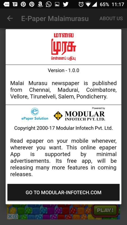 We access you a main official website for app download. 20,000+ users downloaded E-Paper Malaimurasu latest version on 9Apps for free every week! Players who wants to play both because this app is good and because the app are response quickly at any time. This hot app was released on 2019-12-19. Here are some guides of this app: