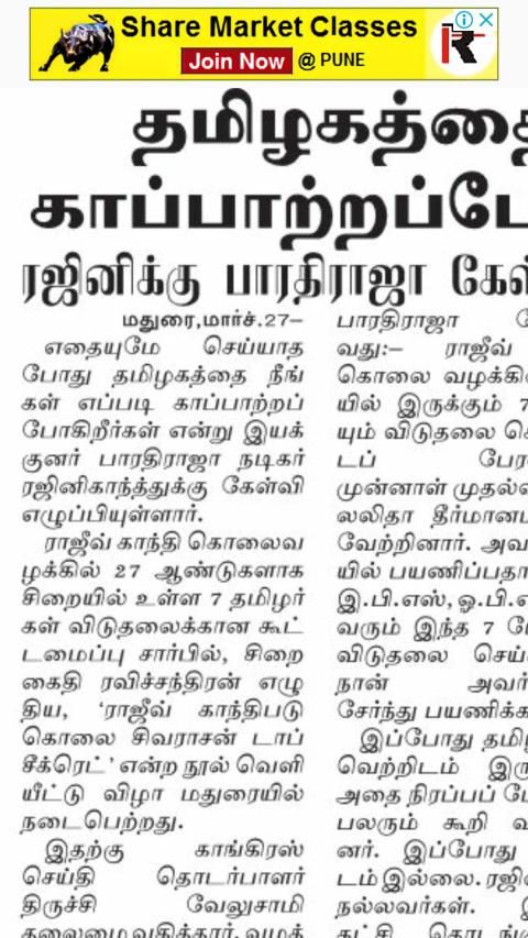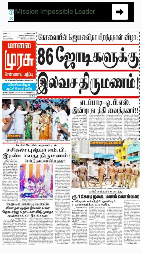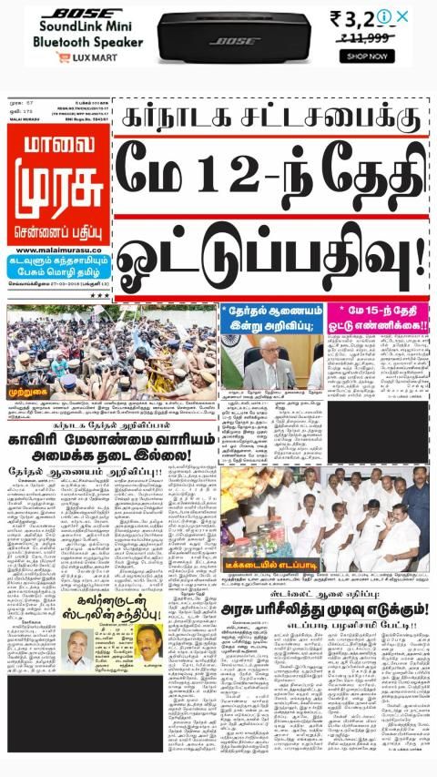 Malai Murasu newspaper is published from Chennai, Madurai, Coimbatore, Vellore, Tirunelveli, Salem, Pondicherry