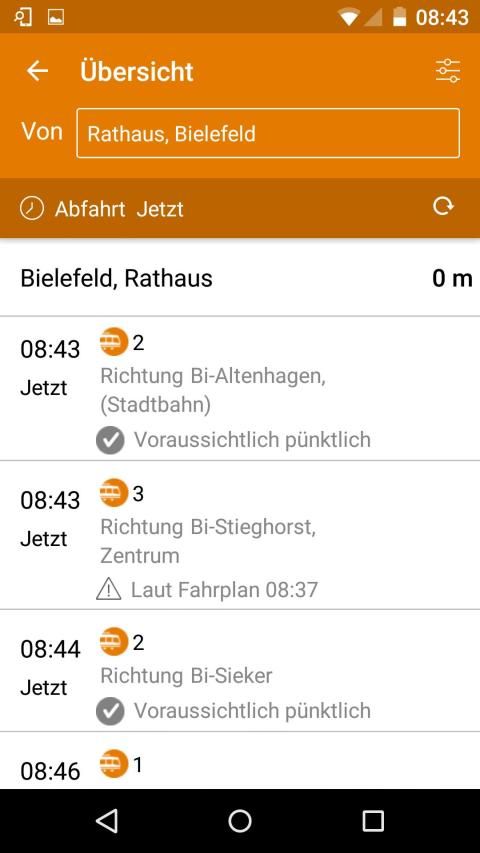 Fahrplanauskunft: Hier finden Sie die schnellste Verbindung mit Bus und Bahn von Ihrem Standort oder einer Startadresse zu einem Zielort – von Tür zu Tür. Speichern Sie bevorzugte Verbindungen für Busse und Bahnen als Favorit, rufen Sie Tarifinformationen für den ÖPNV Bielefeld auf oder kaufen Sie gleich Ihr passendes Ticket. Teilen Sie Ihre Verbindung per SMS, E-Mail, WhatsApp oder im Kalender.