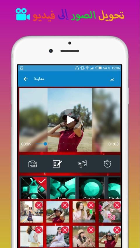 - يمكنك تحويل الصور الى فيديو مع الموسيقى بدون أنترنيت و على هاتفك فقط.